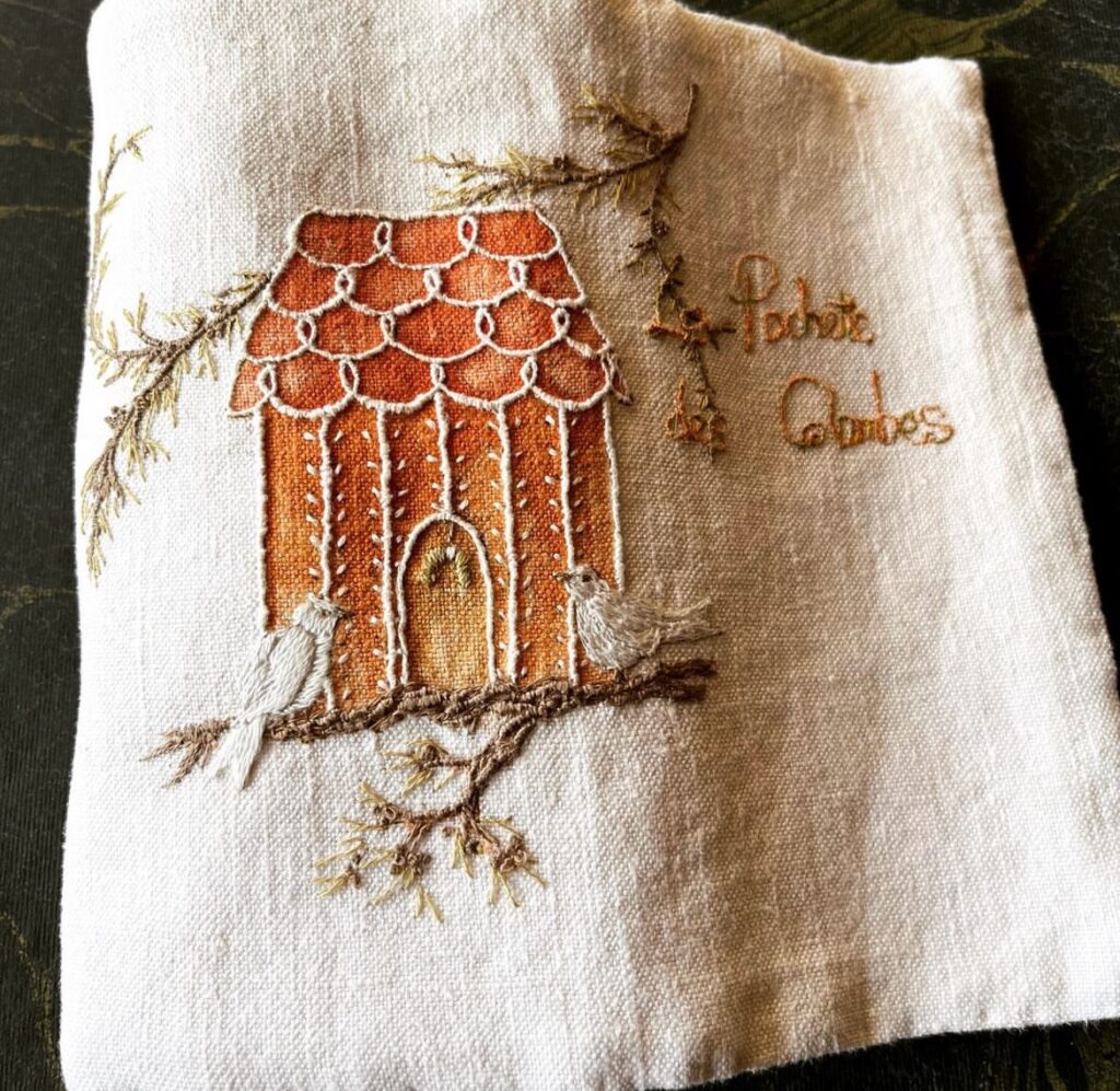 - The romantic hand embroidery design by Caroline Zoob hand printed onto a piece of antique French Linen.