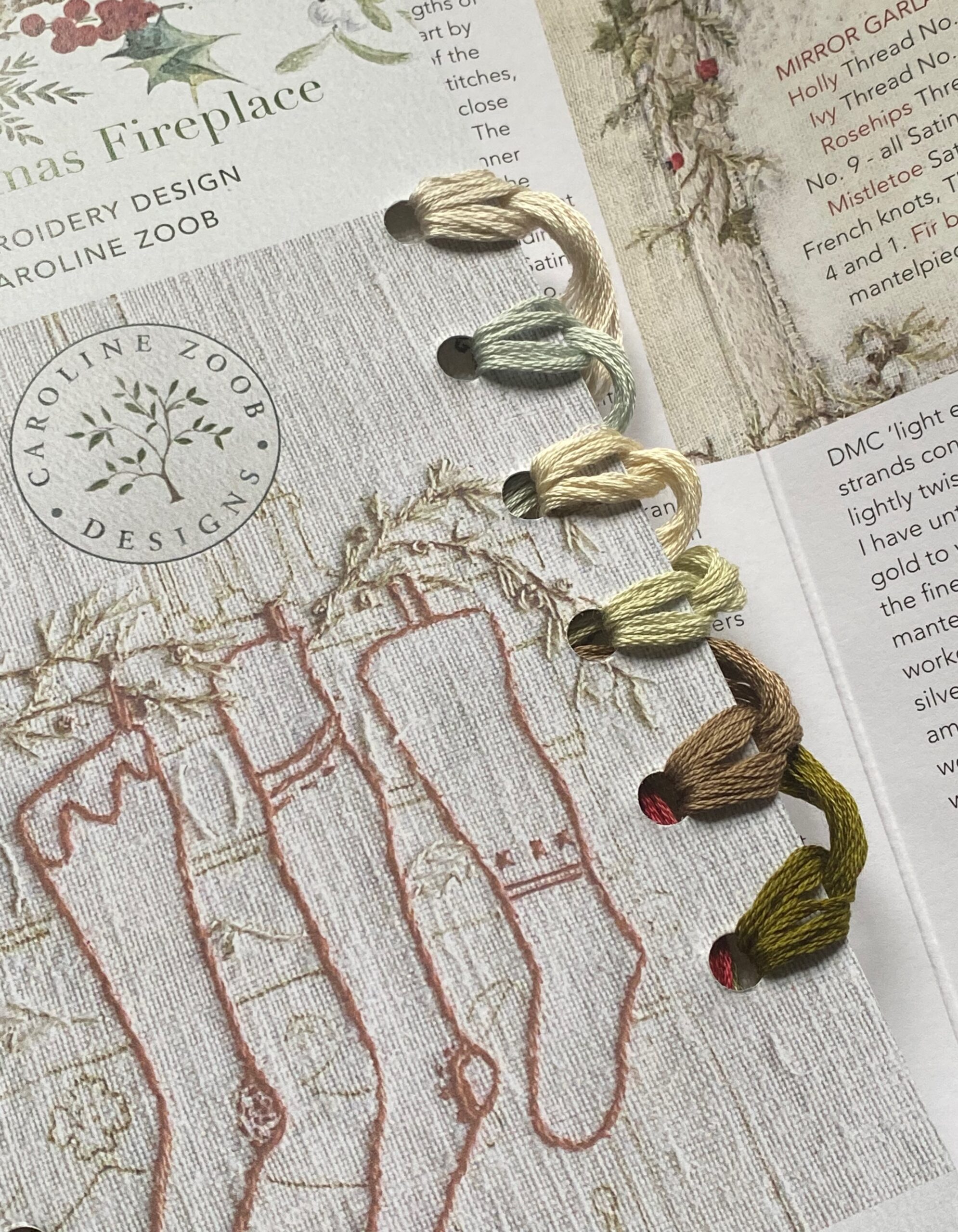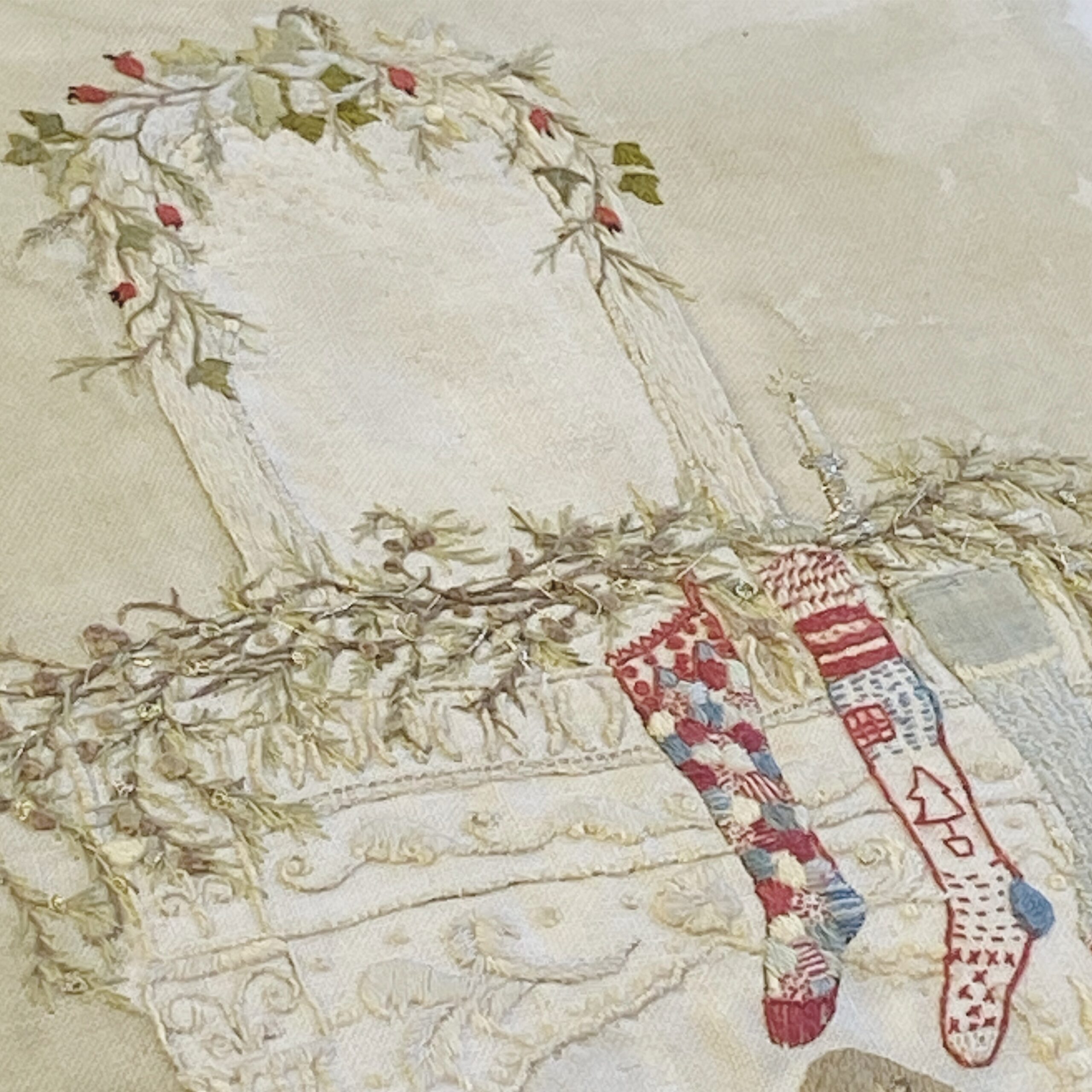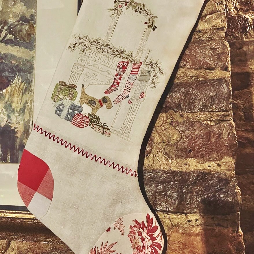 ‘The stockings were hung by the chimney with care’. This hand embroidery kit evokes the magic of the night before Christmas, something that hopefully all children will experience. The waiting, the guessing of what is in the wrapped parcels, the pleasure of wrapping something up, however young you are. The stitching is not difficult and while the kit includes full instructions there is also plenty of scope for creative self-expression in the presents, stockings and garlands — feel free to add or swap colours from your stash of embroidery threads. You can download guides for all the hand embroidery stitches on the home page of my website or take a look at the wonderful Royal School of Needlework online Stitch Bank, such a brilliant idea. You can even adopt a stitch in your name!