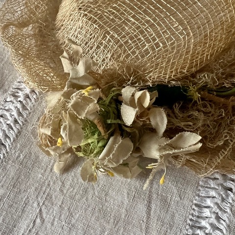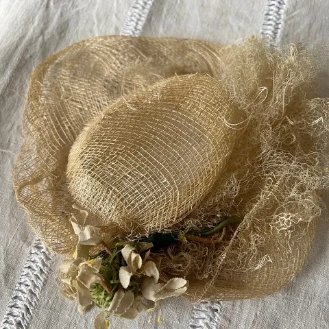 - Very pretty, if somewhat timeworn, dolls' hat with vintage 'faux' white violets.