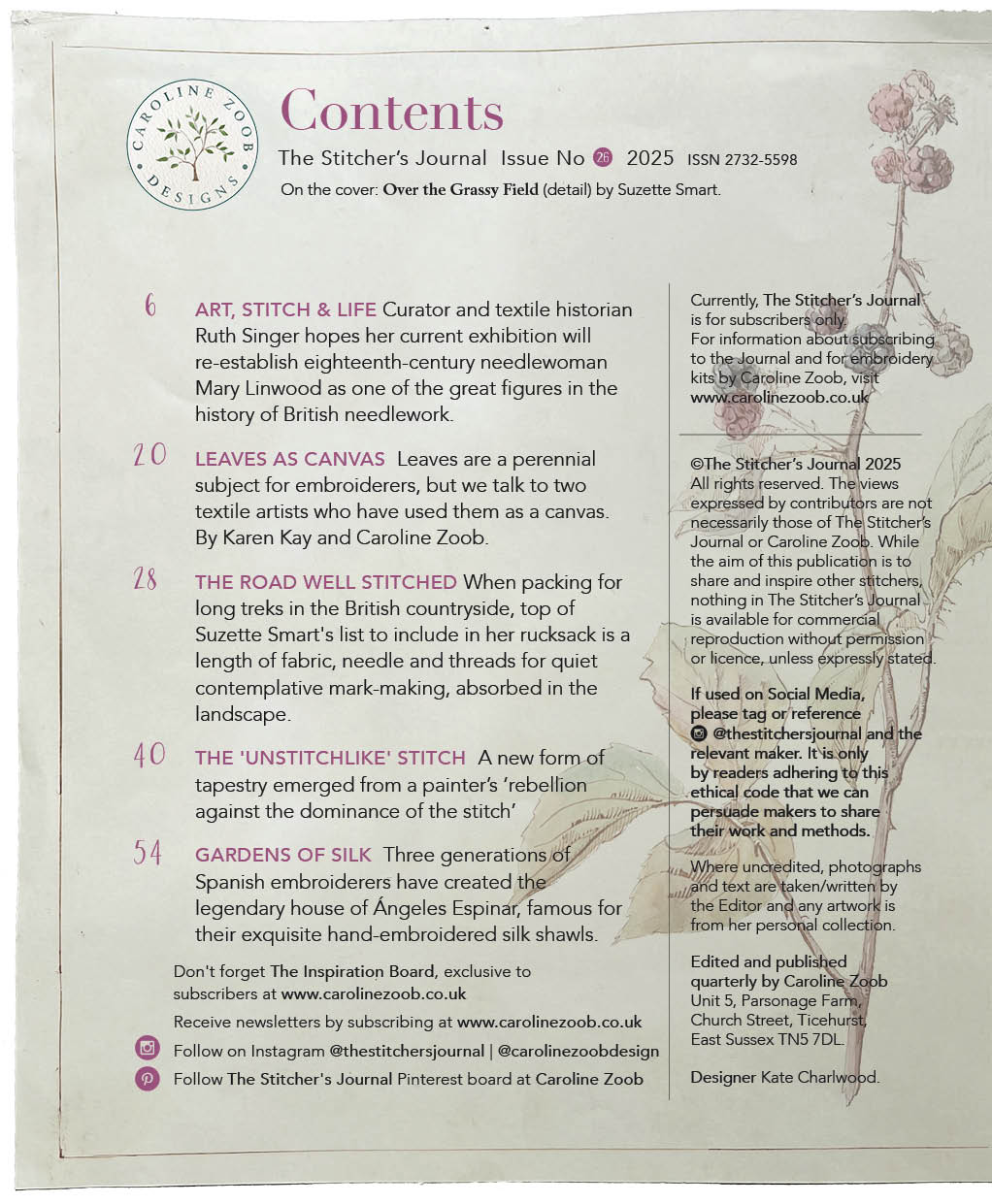 Issue 27 of The Stitcher’s Journal will be despatched early next week. I am just working on the last tweaks now.
